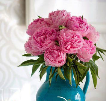 制作过程:每枝芍药花均剪成统一的长短,花枝长度以恰好让花头簇拥在花器口部为佳。尽量填满整个花器口,让造型看上去更加饱满氛围:粉色芍药花搭配孔雀蓝的瓷质花瓶,散发出妩媚和清新气质,非常适合摆放在以浅色调为主的环境中。