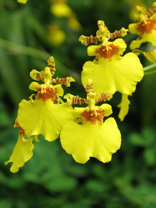 古诗曰:香兰起舞,娟蝶翩跹,鸟语莺喧,草翠如烟,丽秀玉颜,黛眉轻佻,曼舞罗衫。文心兰像是踩着平平仄仄的旋律跳着舞的少女,快乐活泼亦婉约动人。大地的欢乐从它的裙摆展开,那欢乐,随着脚尖舞动。